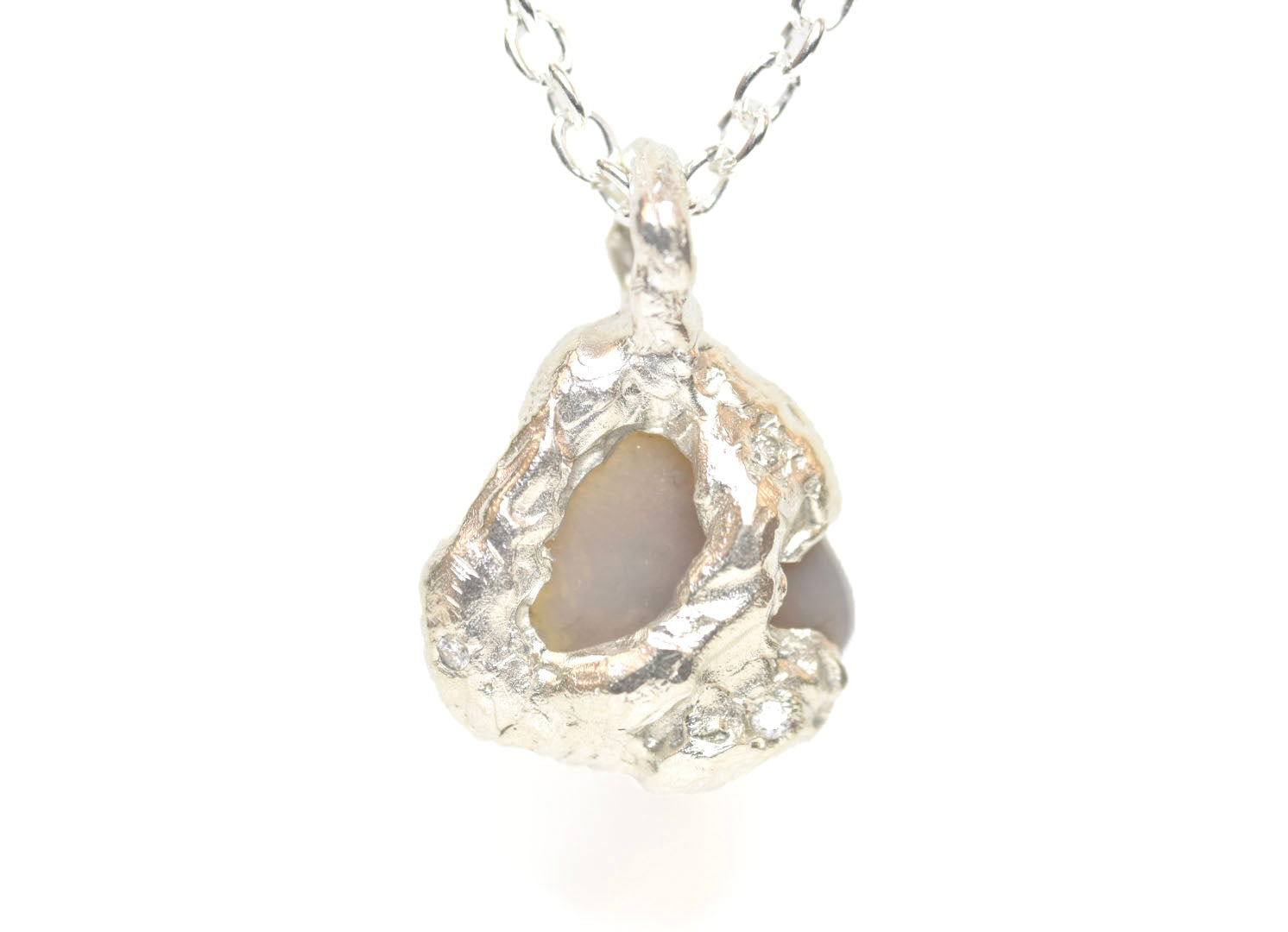 Made in situ on the mountain top of Ben Lomond, with a 1ct Australian Opal and 1mm White Diamonds. The carved silver reflects the ancient eroded volcanic rock from the many streams on the mountain.