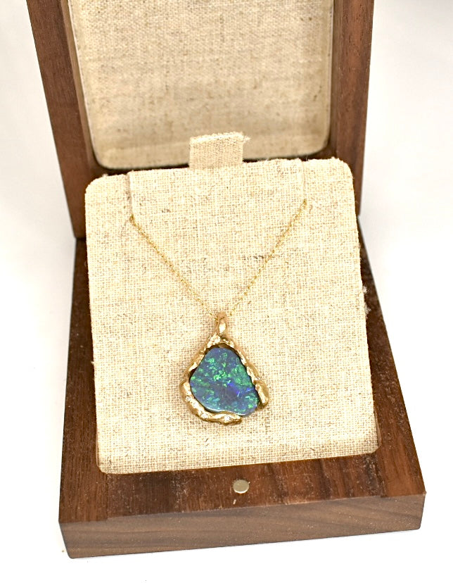 5.1ct Black Opal and White Diamond Pendant. 14k Yellow Gold. Cliffs of Torquay.