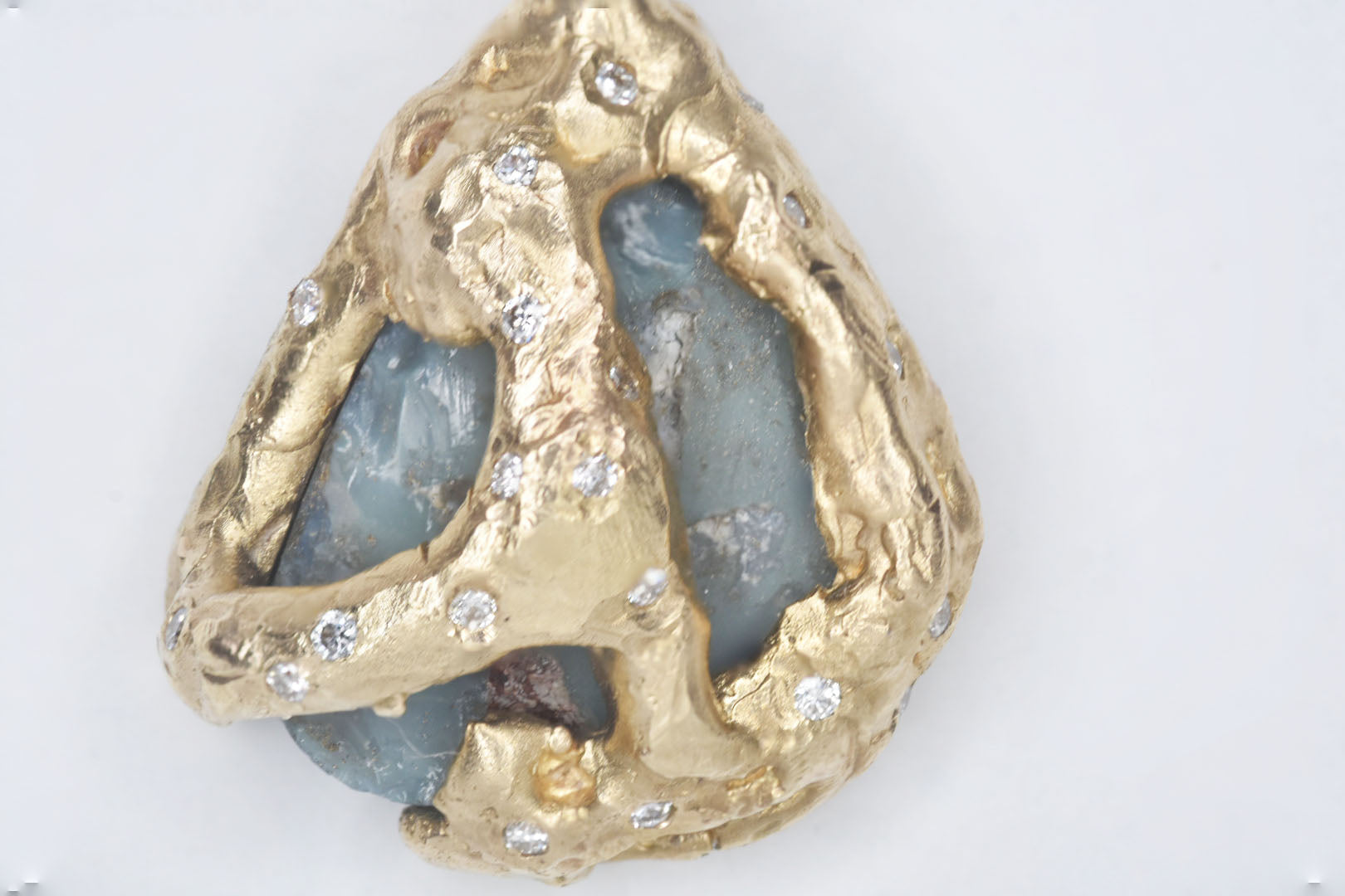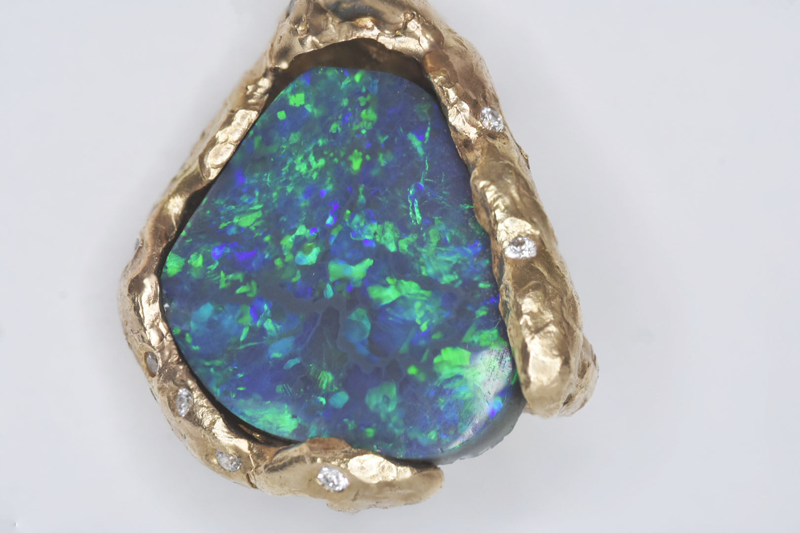 Carved in situ on the cliffs close to Torquay last summer. The Australian black opal resembles the blue Ocean colours and the yellow gold the craggy and eroded cliffs near to Torquay. Set with 1mm White Diamonds on the back and sides.