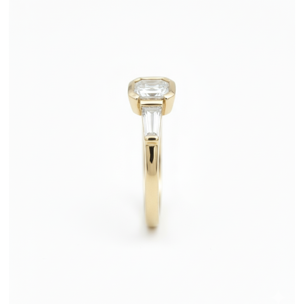 Side Diamonds 0.16ct Tapered Baguette Cut.