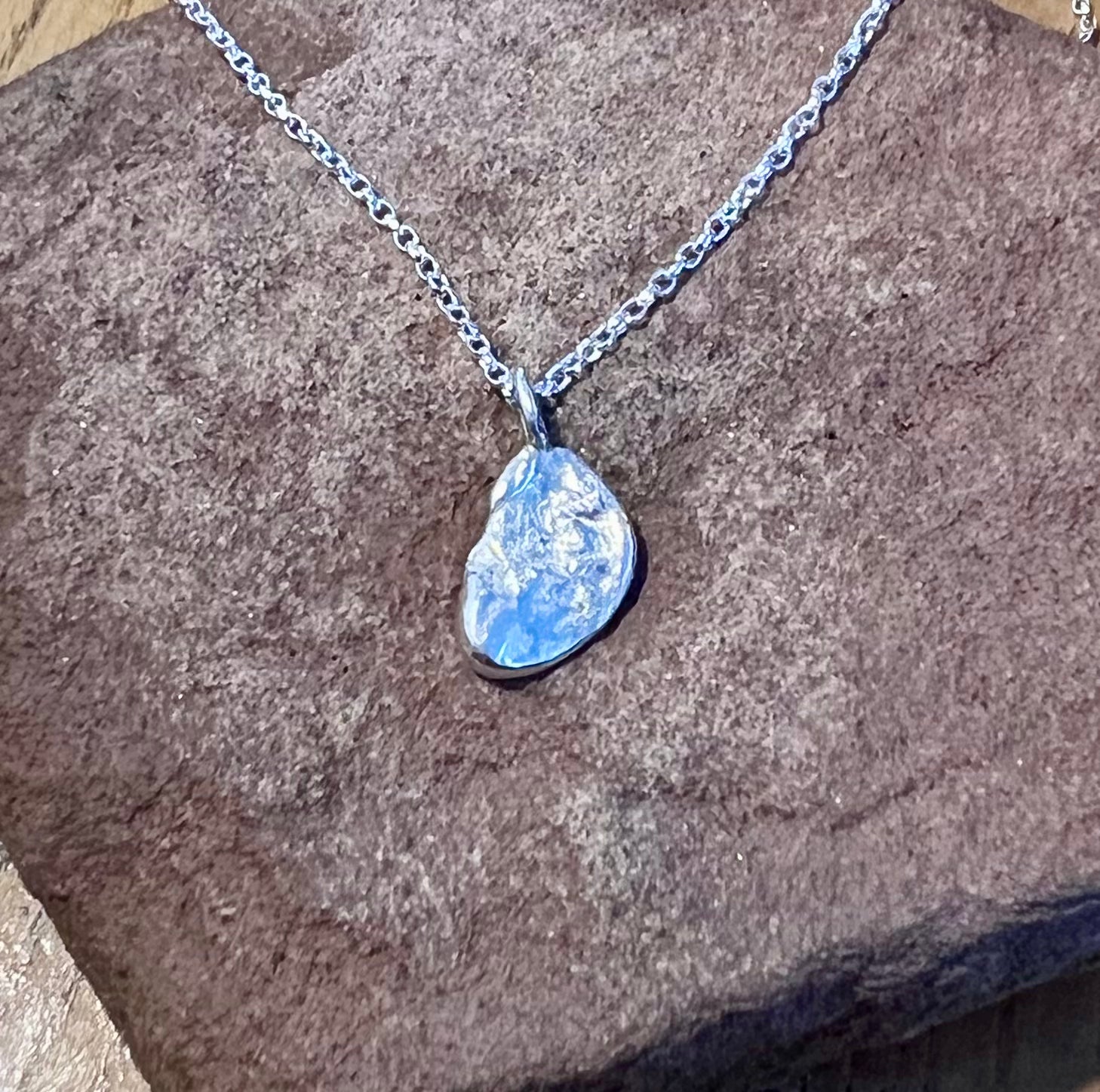 Made in situ with argentium silver, and a 18 inch 925 silver belcher chain.